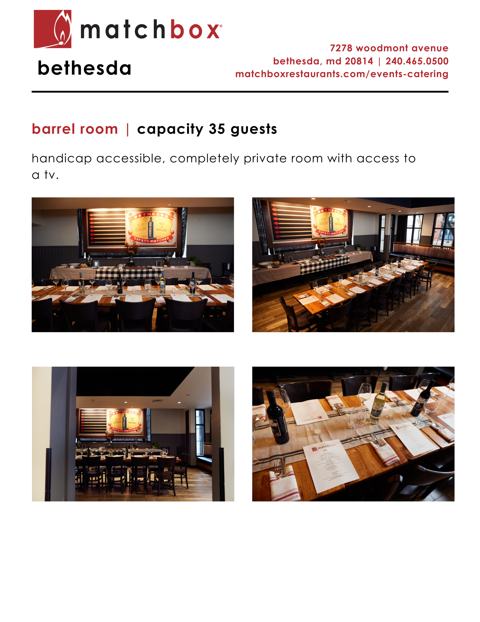 Located on the lively corner of Woodmont Avenue and Elm Street along Bethesda Row, matchbox draws in passersby with oversized windows lining the sidewalk and a front-row view of the blazing pizza oven. Once indoors, the vibe remains warm and residential, as though guests are being welcomed into the matchbox home.